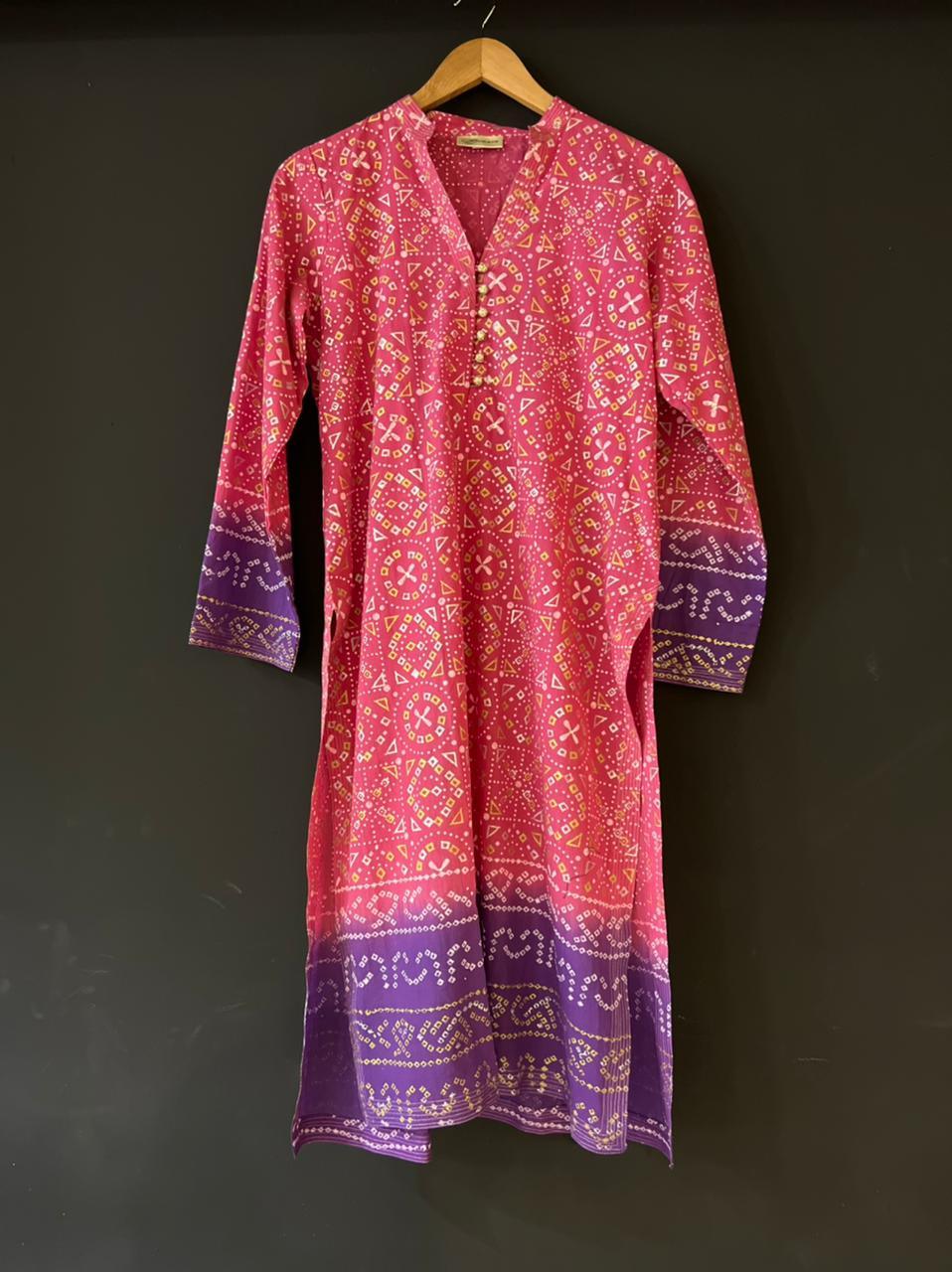 A Tonal Gold Silver Block Printed Pret Shirt with Beautiful Chundri Design