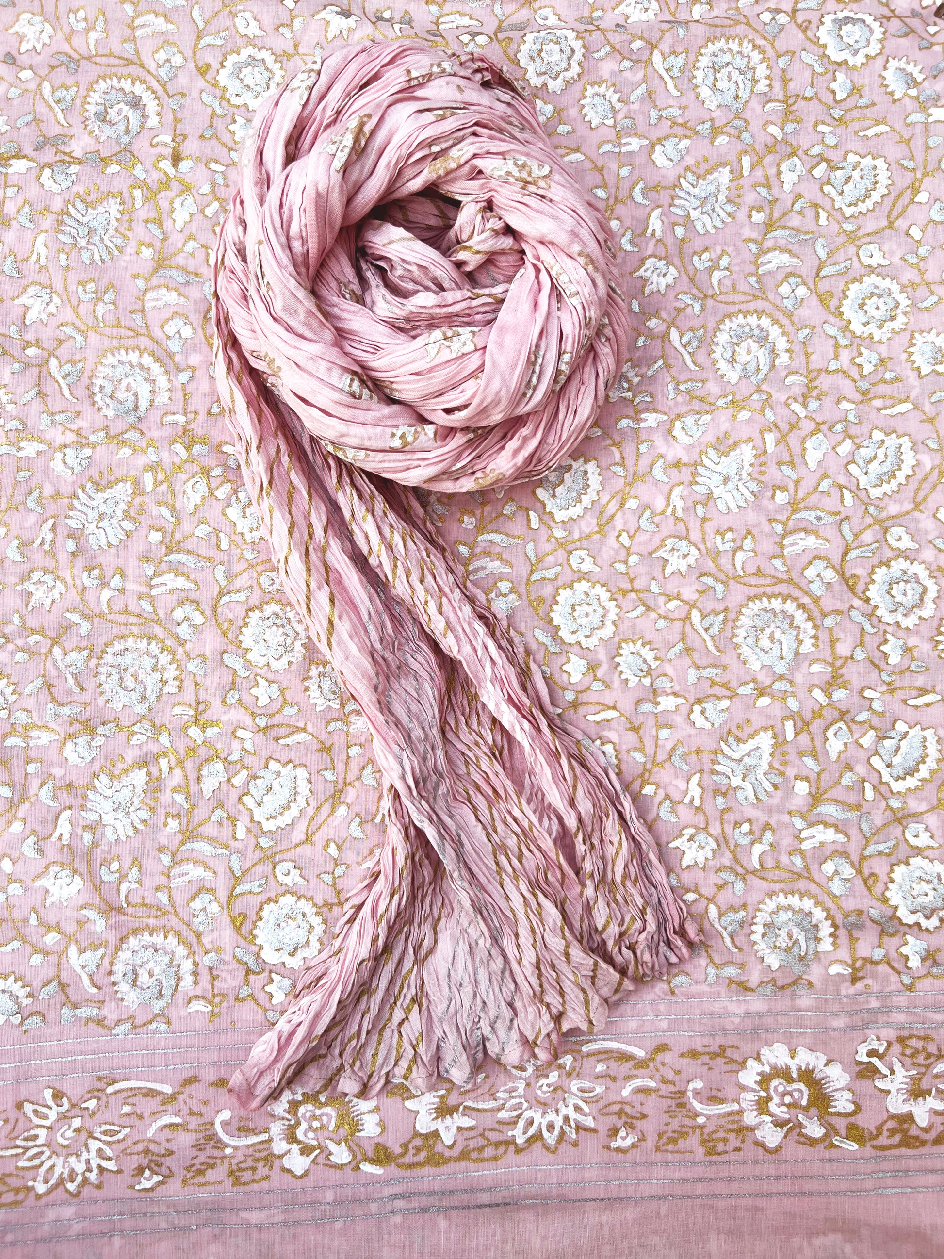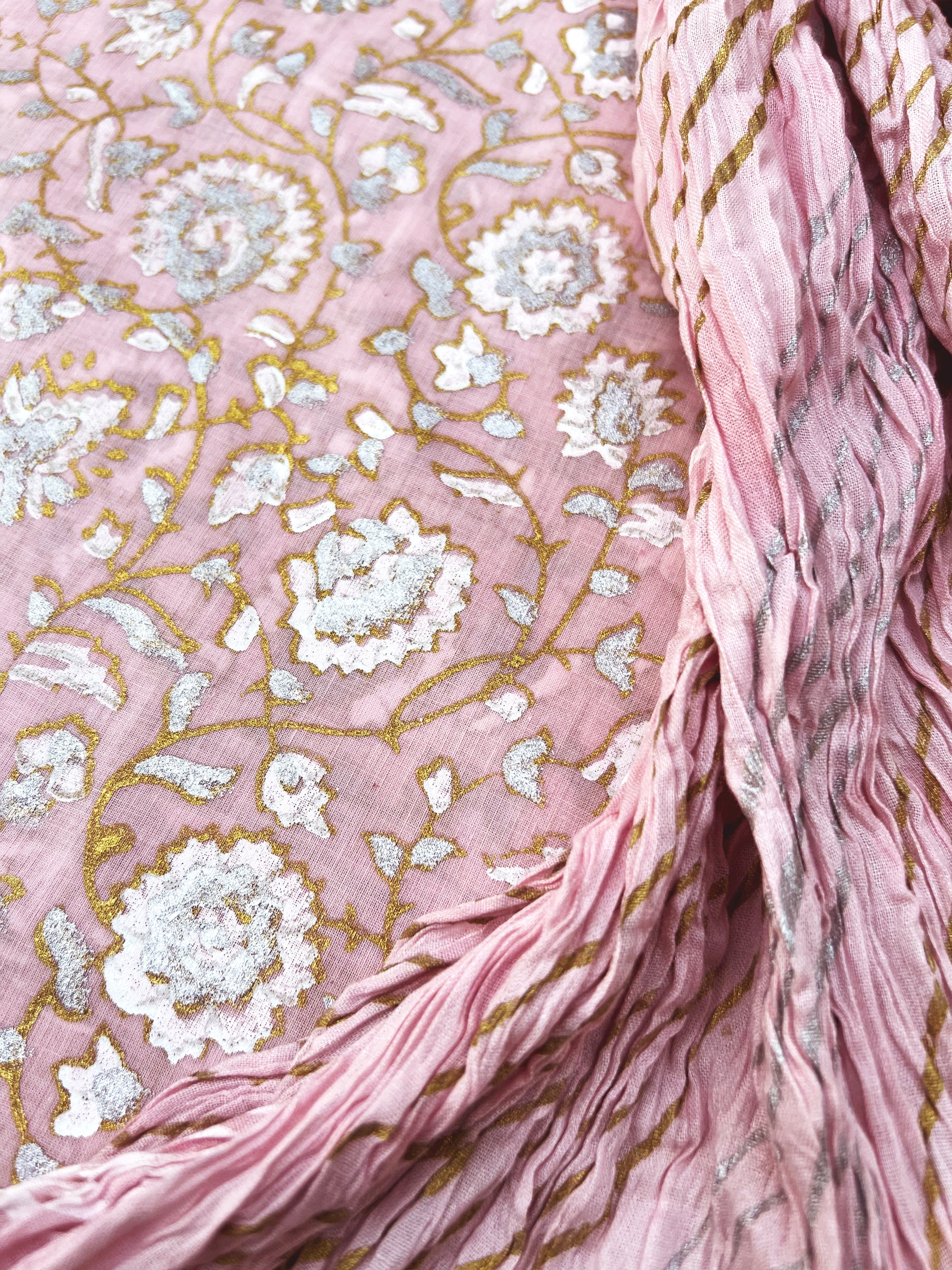Gainda Phool Block Printed with Luxury Gold Silver on Barbie Pink - Unstitched Collection