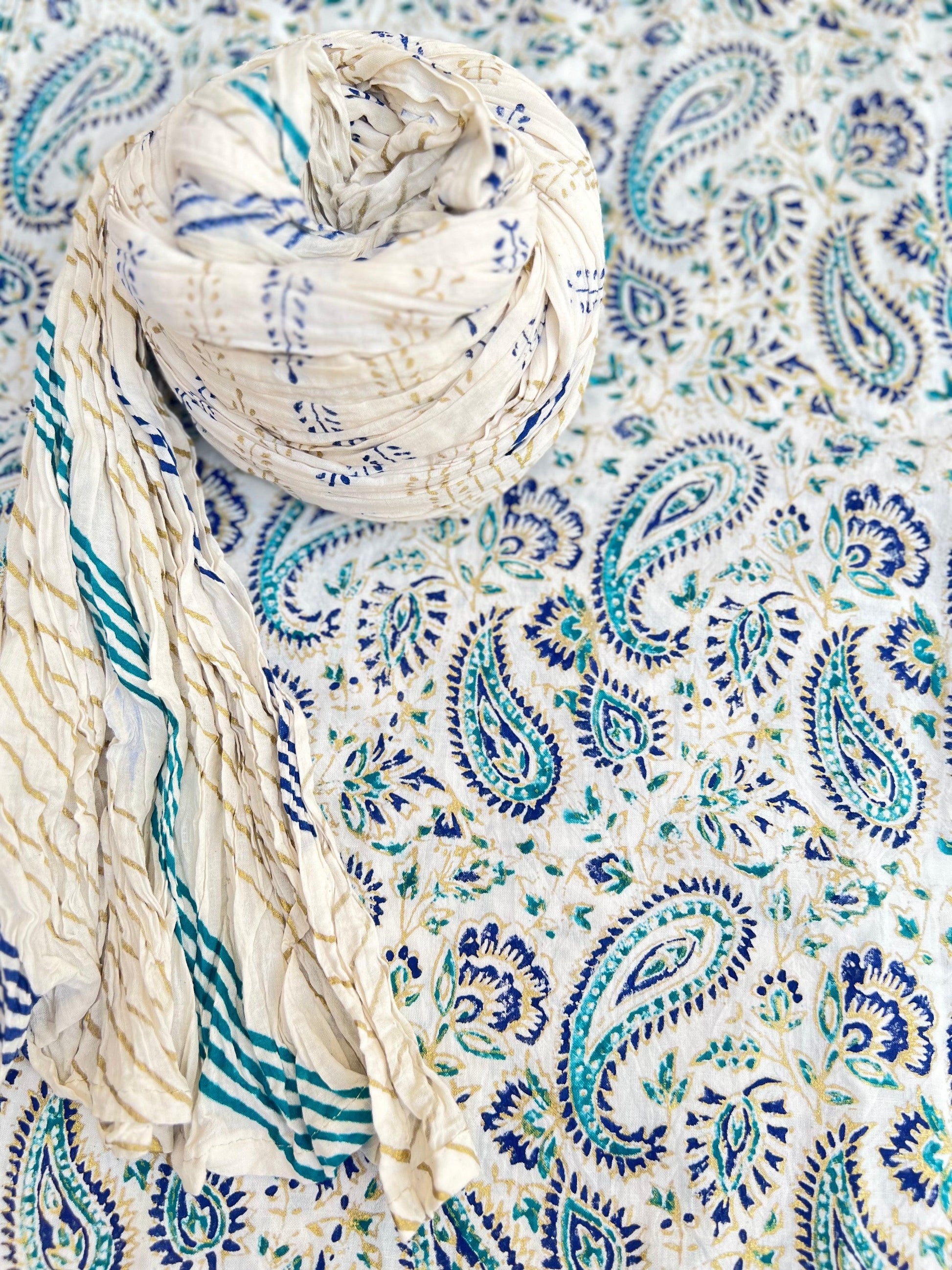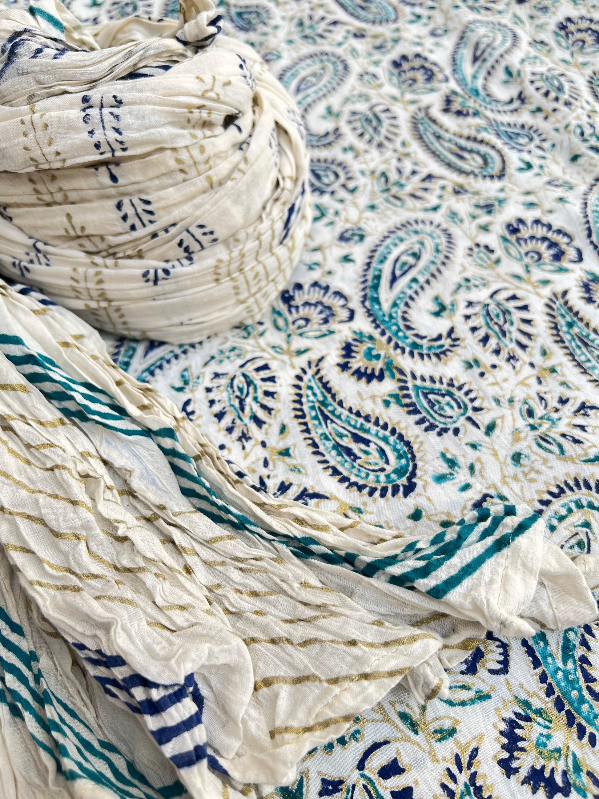 Maryam Paisley Design Hand Block Printed with Gold Ferozi and Blue - Unstitched Collection