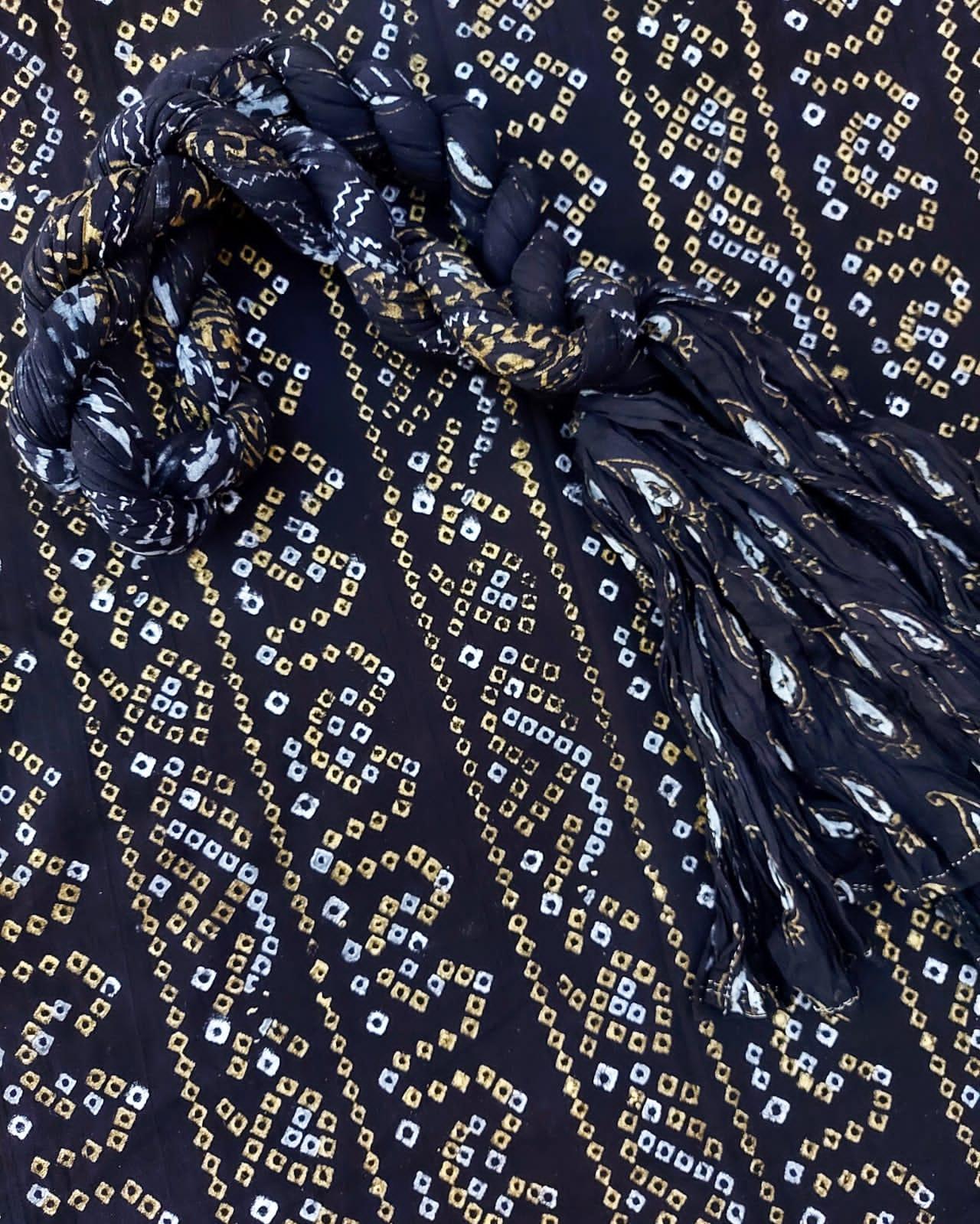 Bandhani Design with Gold silver block printed Unstitched Collection