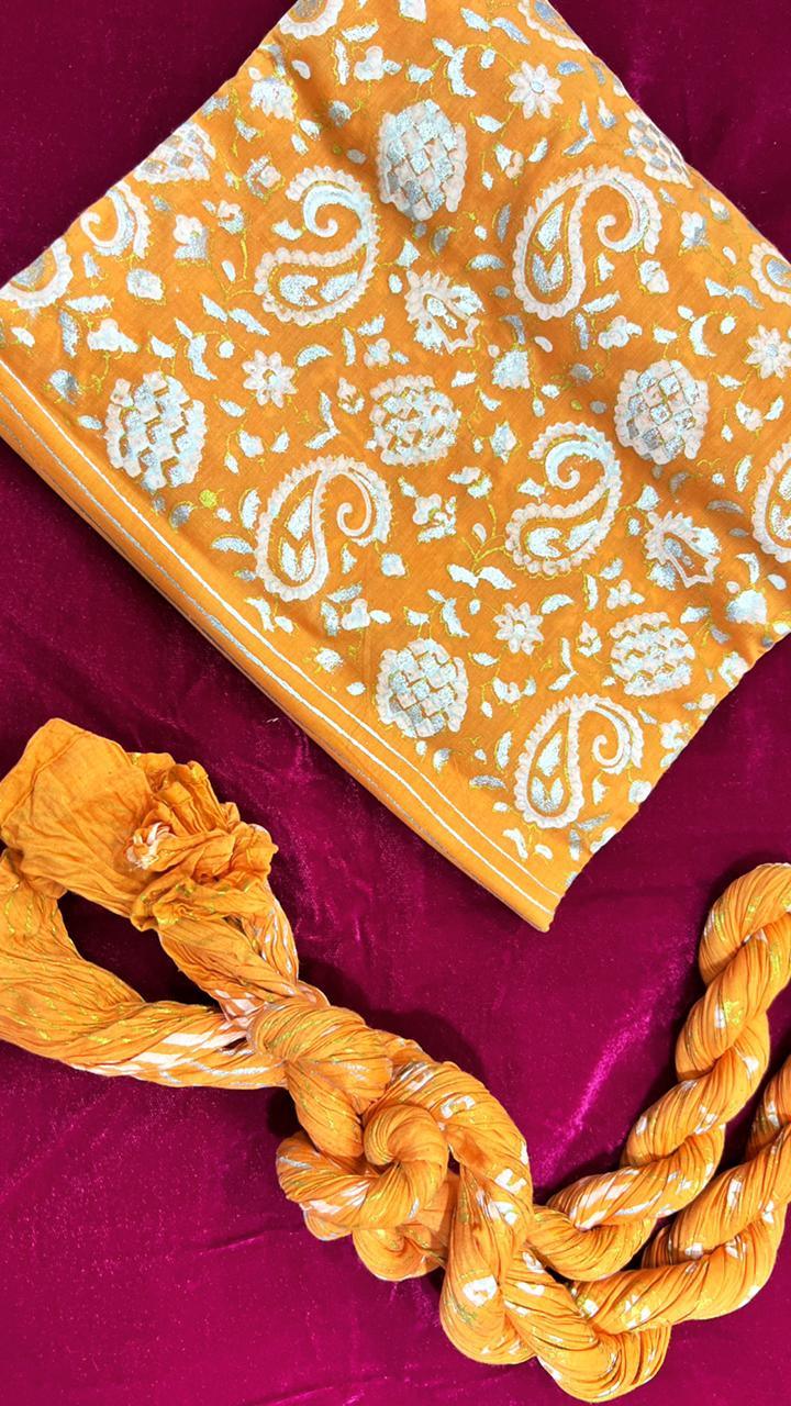 Royal Paisley Block Printed with Gold silver - Unstitched Collection