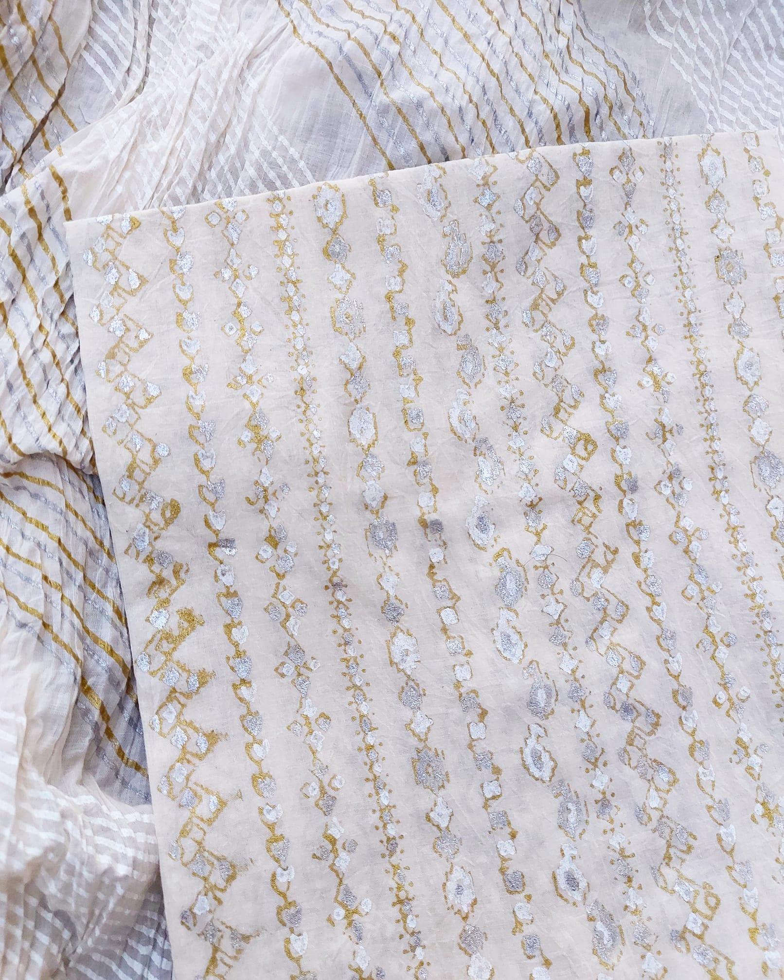Eminent your beautiful look in this intricate design block printed with gold silver - Unstitched Collection