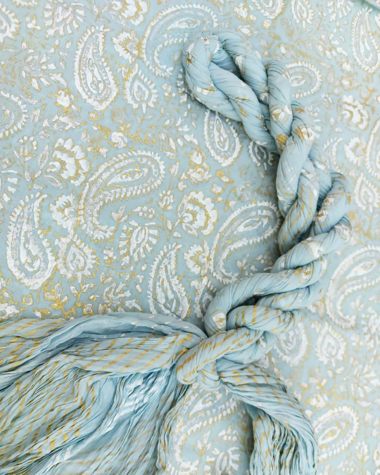 Sophisticated gold, silver, and white hand block printed Maryam Paisley Design - Unstitched Collection